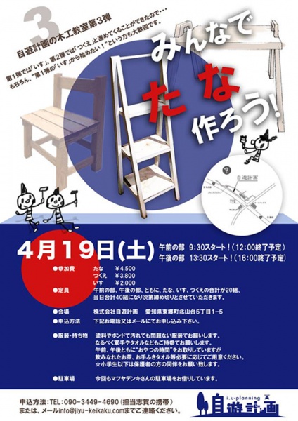 第1弾は“いす”、第2弾は“つくえ”と続きましたので 今度は“たな”をつくりませんか~???